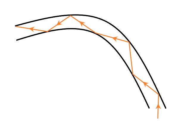 إذ يُمكن للضوء أن ينعكس بشكلٍ كاملٍ على السطح الفاصل عندَ ورودهِ من وسط ذو قرينة انكسار أكبر إلى وسط قرينة انكساره أقل، فعندَ دخول الضوء من أحد طرفي الليف الضوئي، فإنَّه يعاني عدّة انعكاساتٍ داخلية كلية، حتى لو كان الليف الضوئي منحنياً أو منثنياً، وذلك بسبب ورود الضوء من وسط أول قرينة انكساره أكبر من قرينة انكسار الوسط الثاني، وبزاوية ورودٍ أكبر من الزاوية الحرجة.